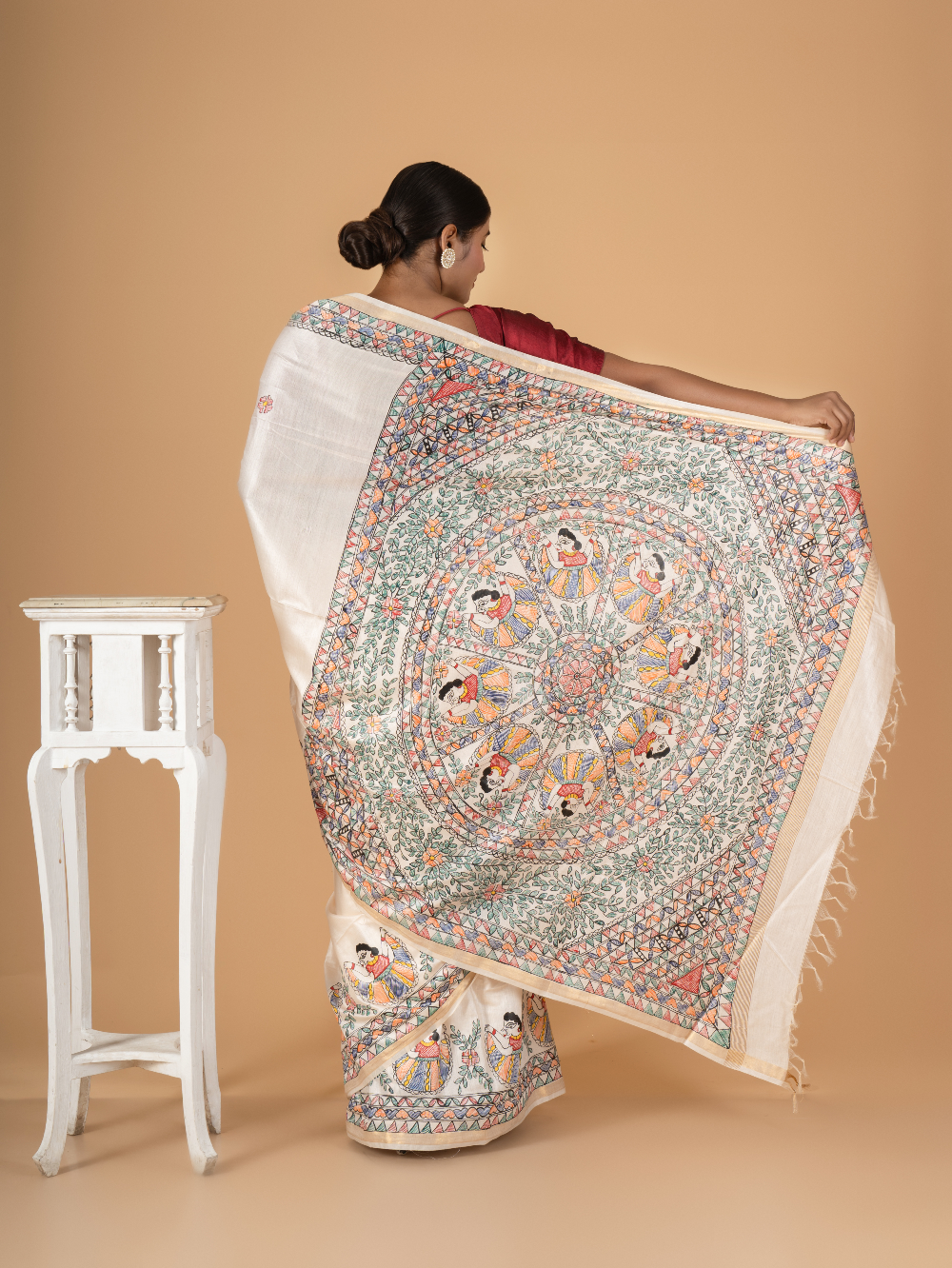 Vanya Vihara β Beige Madhubani Desi Tussar Silk Saree