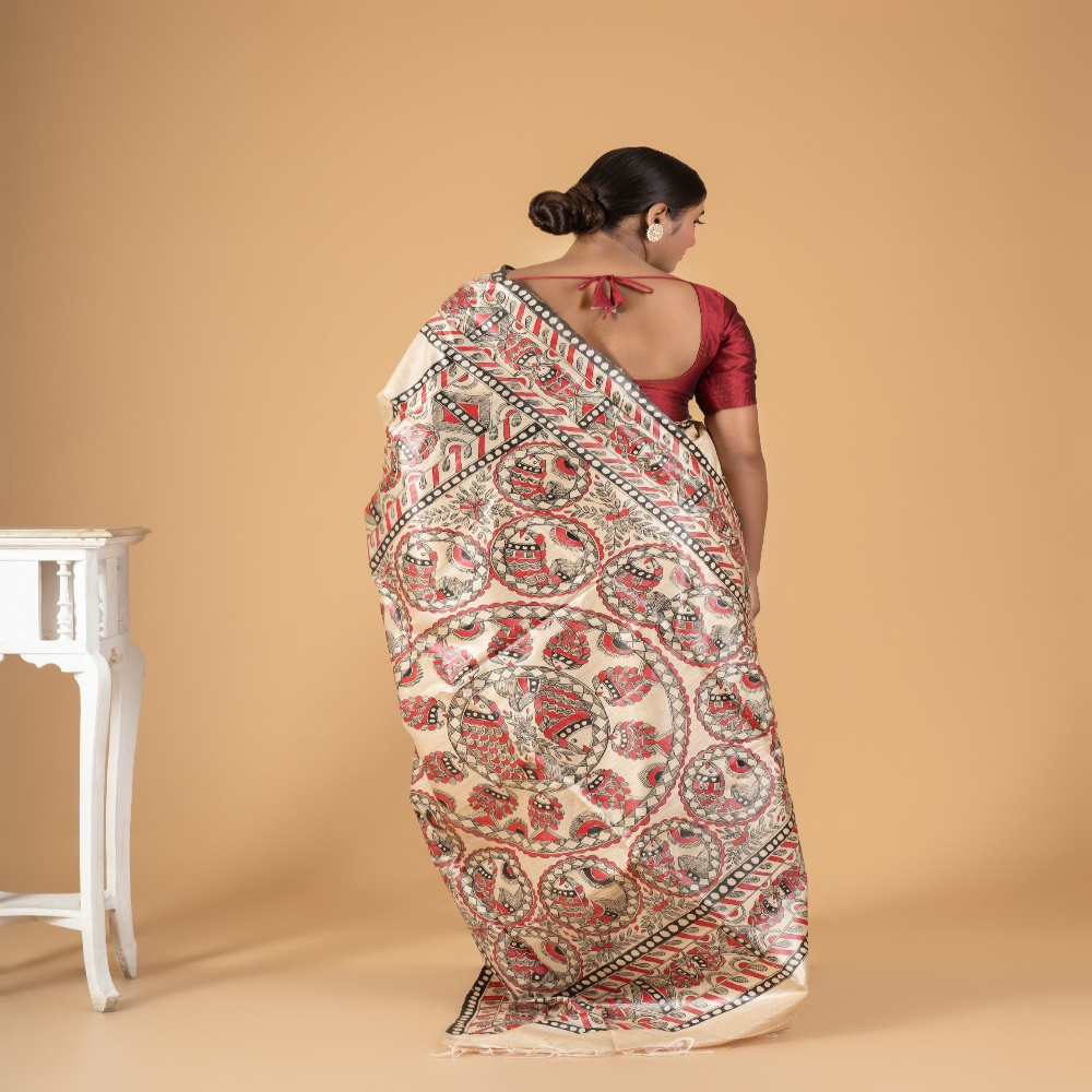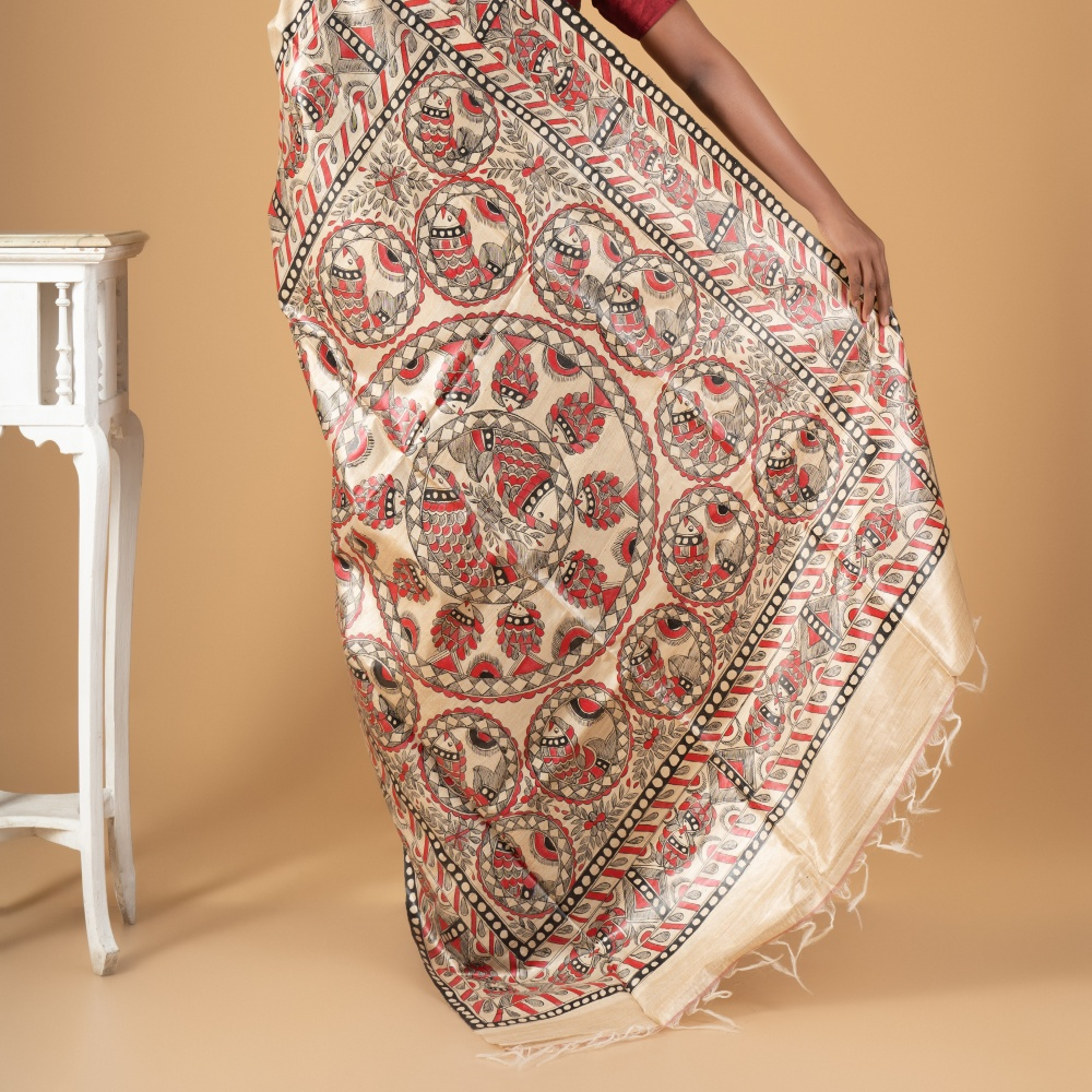 Mithila Varnika Tan Colour Tussar Silk Madhubani Saree