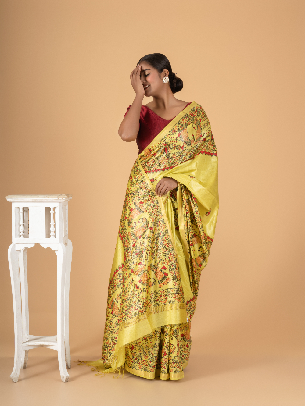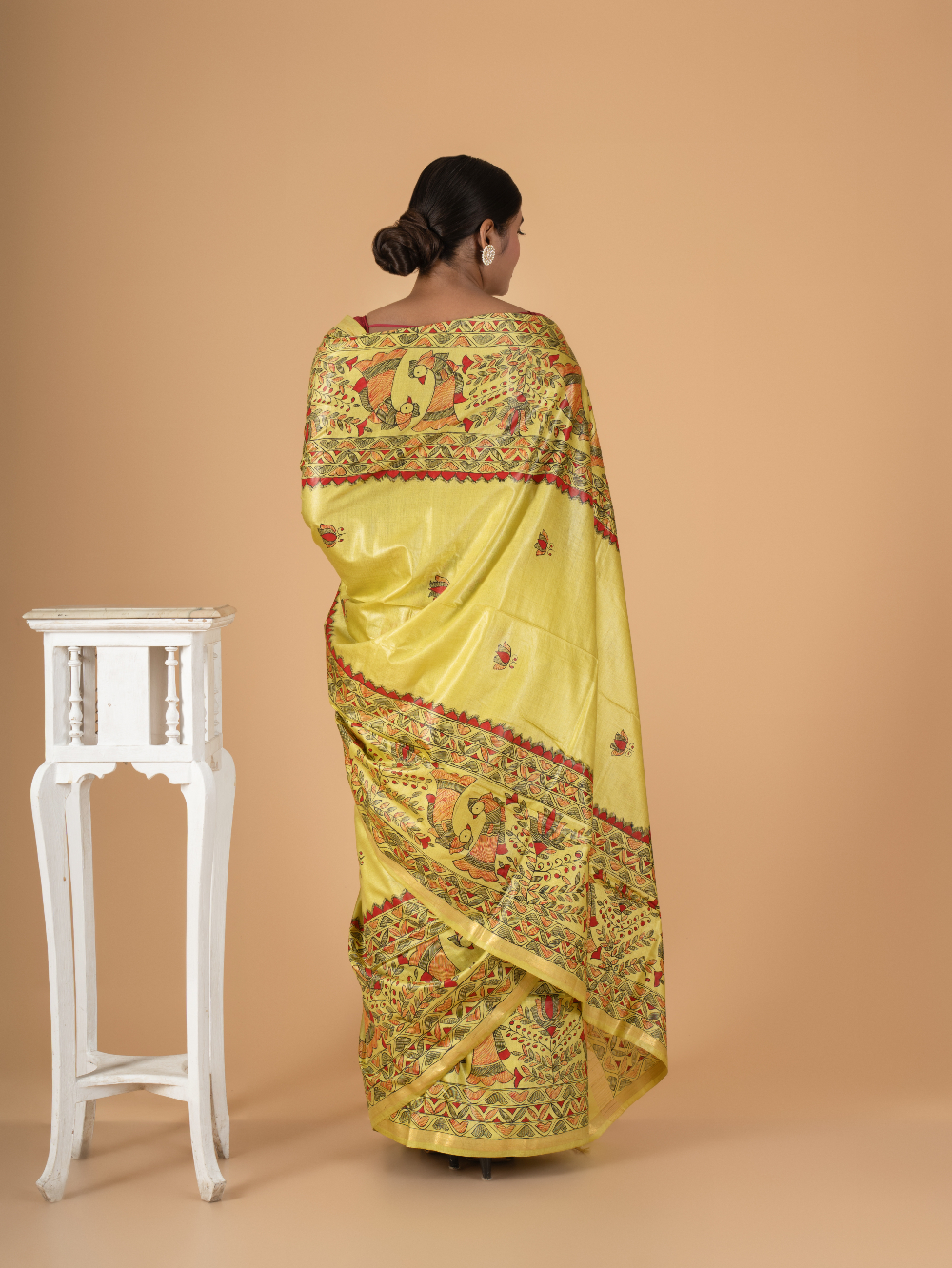 Rangrekha β Yellow Madhubani Hand-Painted Chaneri Silk Saree