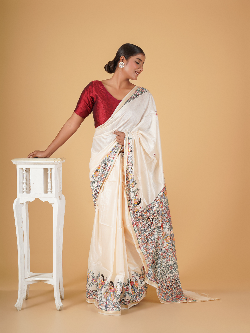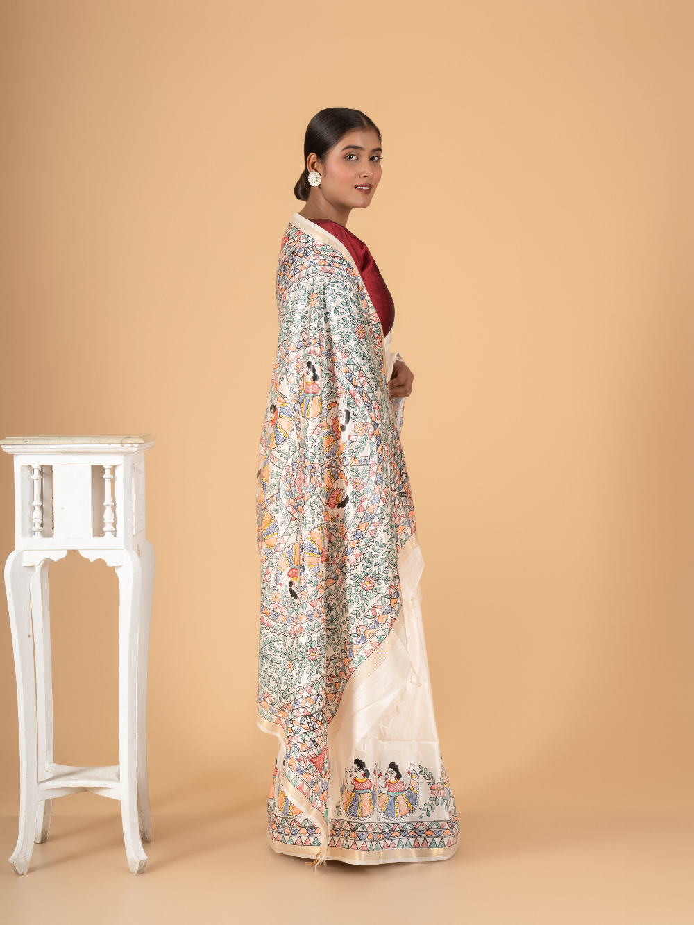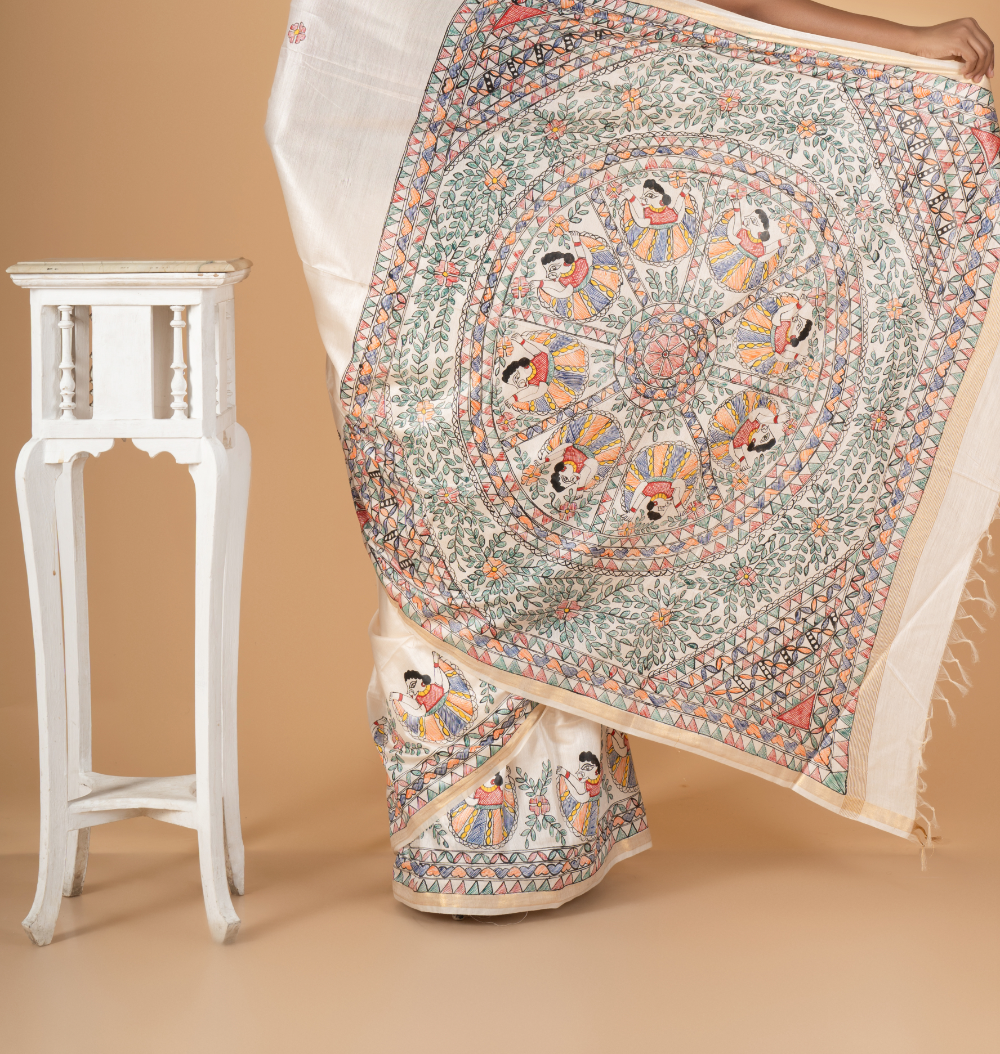 Vanya Vihara β Beige Madhubani Desi Tussar Silk Saree