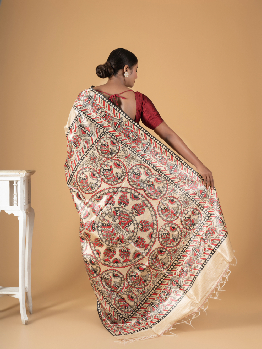 Mithila Varnika Tan Colour Tussar Silk Madhubani Saree